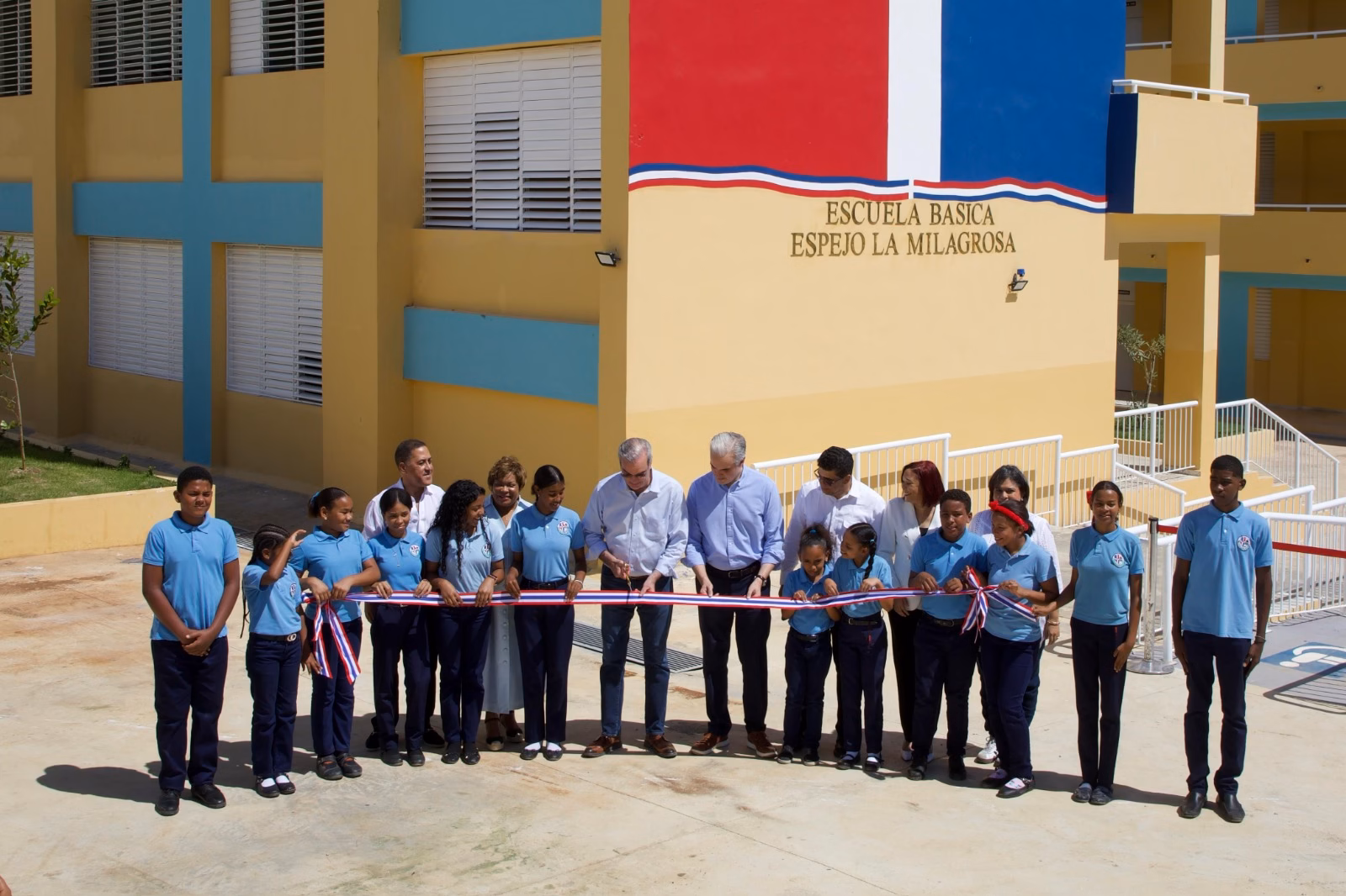 El presidente de la República, Luis Abinader, junto al ministro de Educación, Luis Miguel De Camps, encabezaron este domingo la inauguración de la Escuela Básica Espejo La Milagrosa, que dispone de 24 aulas, de las cuales tres corresponden al nivel Inicial, con capacidad para 840 estudiantes del nivel Primario, en el sector Cancela-La Ureña, de Santo Domingo Este.