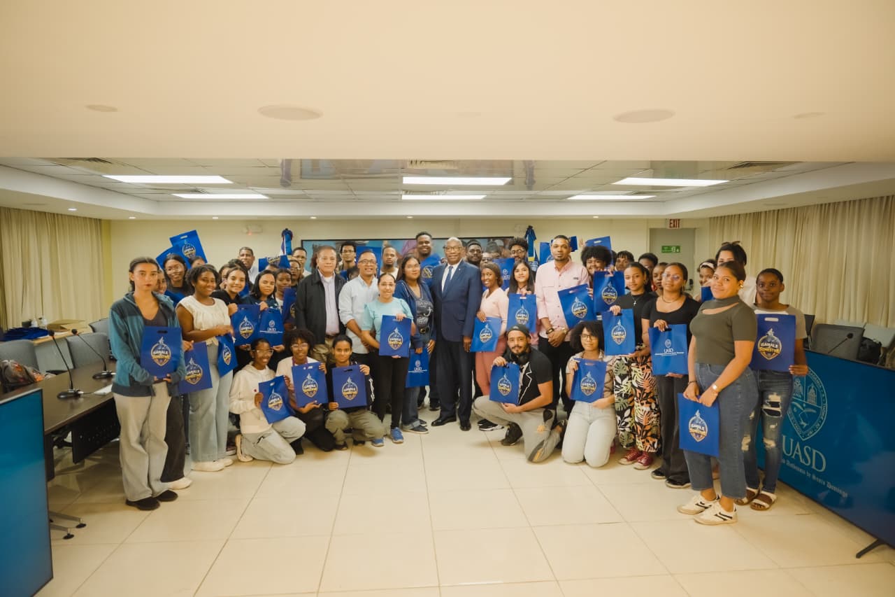 El rector de la Universidad Autónoma de Santo Domingo (UASD), Editrudis Beltrán Crisóstomo, recibió en el Despacho de la Rectoría, a los estudiantes ganadores del concurso “Gánale al Semestre”, a quienes ofreció un mensaje de bienvenida enfocado en la importancia de la disciplina, la perseverancia y el compromiso con el conocimiento como pilares fundamentales para la superación personal y el desarrollo del país.
