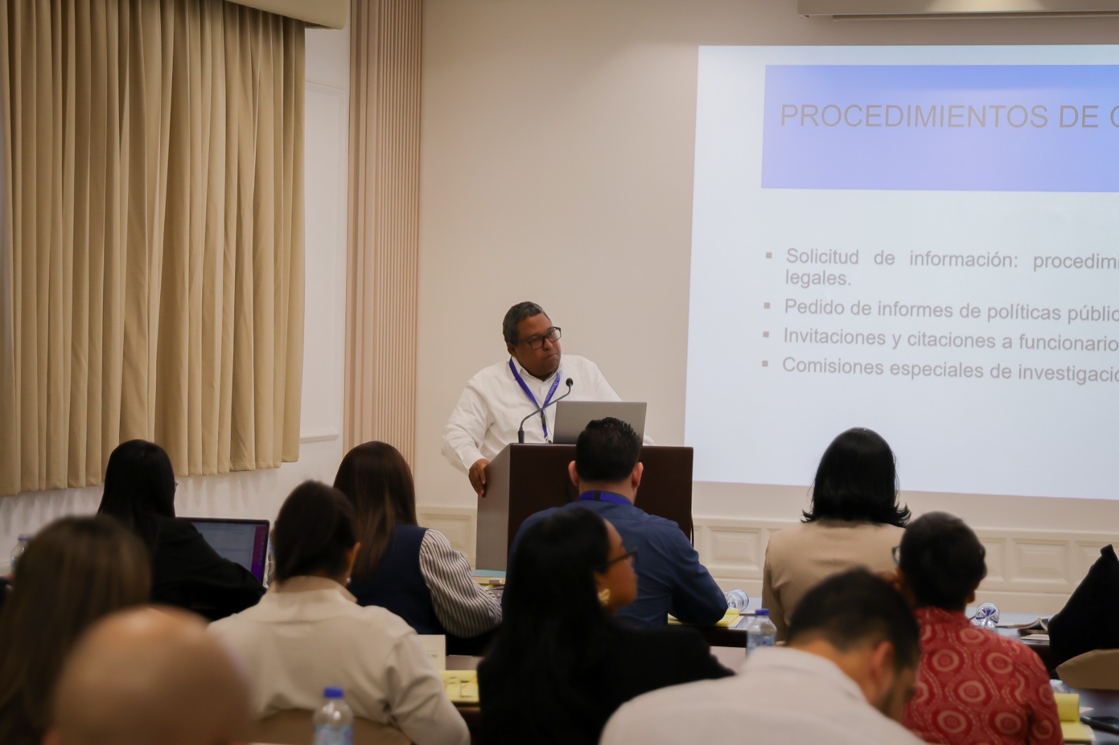 De igual manera, se trataron los procedimientos de control político; tales como la solicitud de información, sus plazos y consecuencias legales, los pedidos de informes sobre políticas públicas, las invitaciones y citaciones a funcionarios, y las atribuciones de las comisiones especiales de investigación.